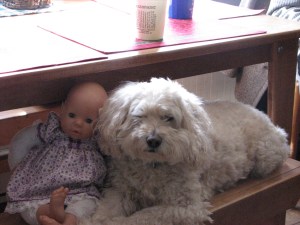 Yes, I do realize that this is not a sheep. It is my sweet dog, Fritz. He is furry, no doubt about it. Furry enough that as I was walking him in the yard soon after we got him, our neighbor called out, “What are you walking that sheep for?” Much laughter on his part ensued, and much to Fritz’ chagrin, that joke continued for a few years.