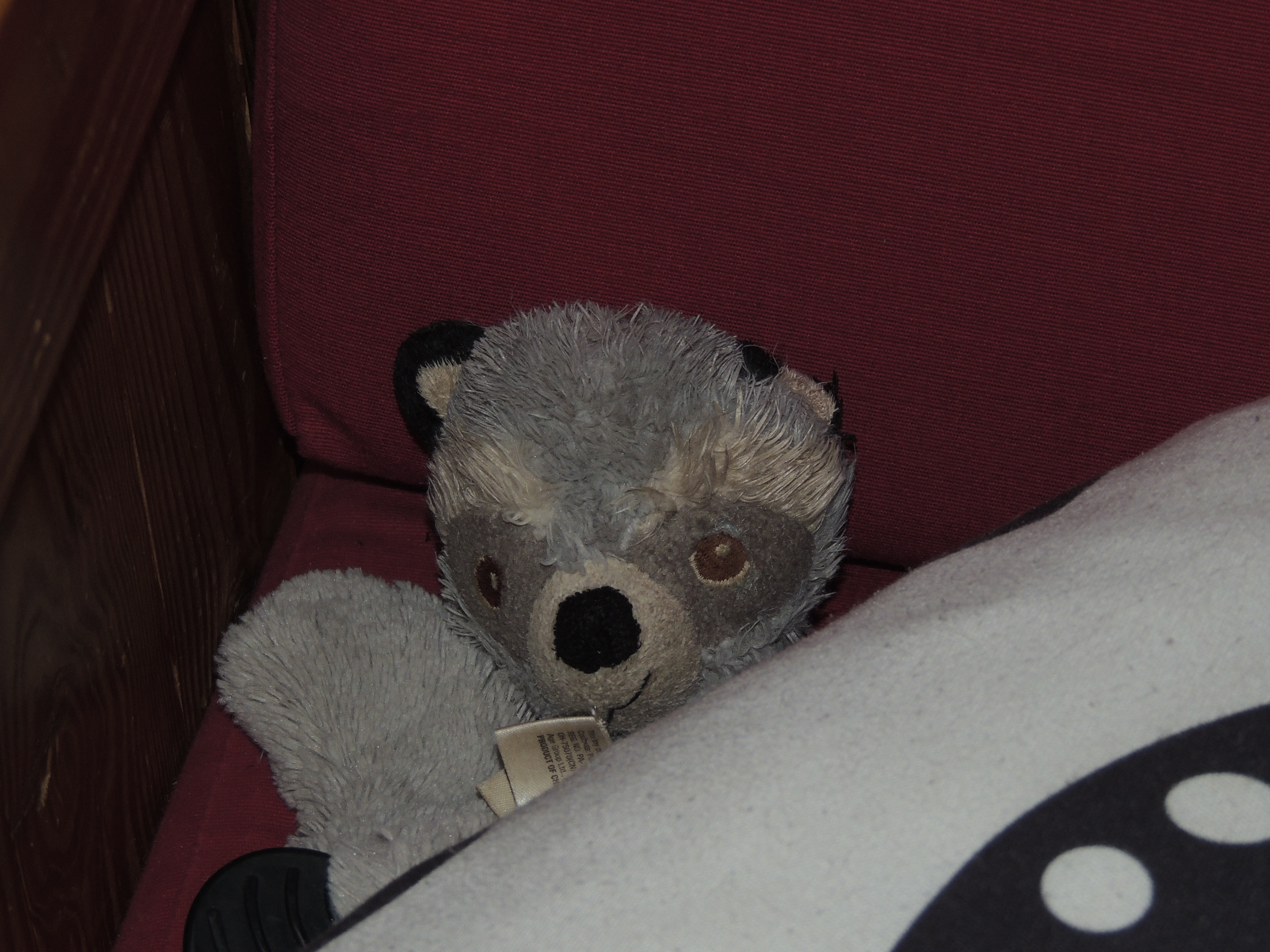 Our dog Finnegan has a baby. A little raccoon toy that he has loved since he first came to our home at 7 weeks old. He loves to cuddle with it, and when he’s not with Baby, he feels compelled to hide him in a safe location until Finnegan decide to play with him again. He’ll walk around and around the house, carrying Baby in his mouth, looking for just the perfect spot.