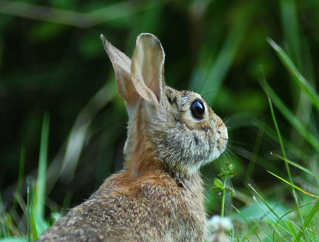 -Frozen rabbit that has been spotted in the yard…..holding very still and barely breathing until the danger has passed.